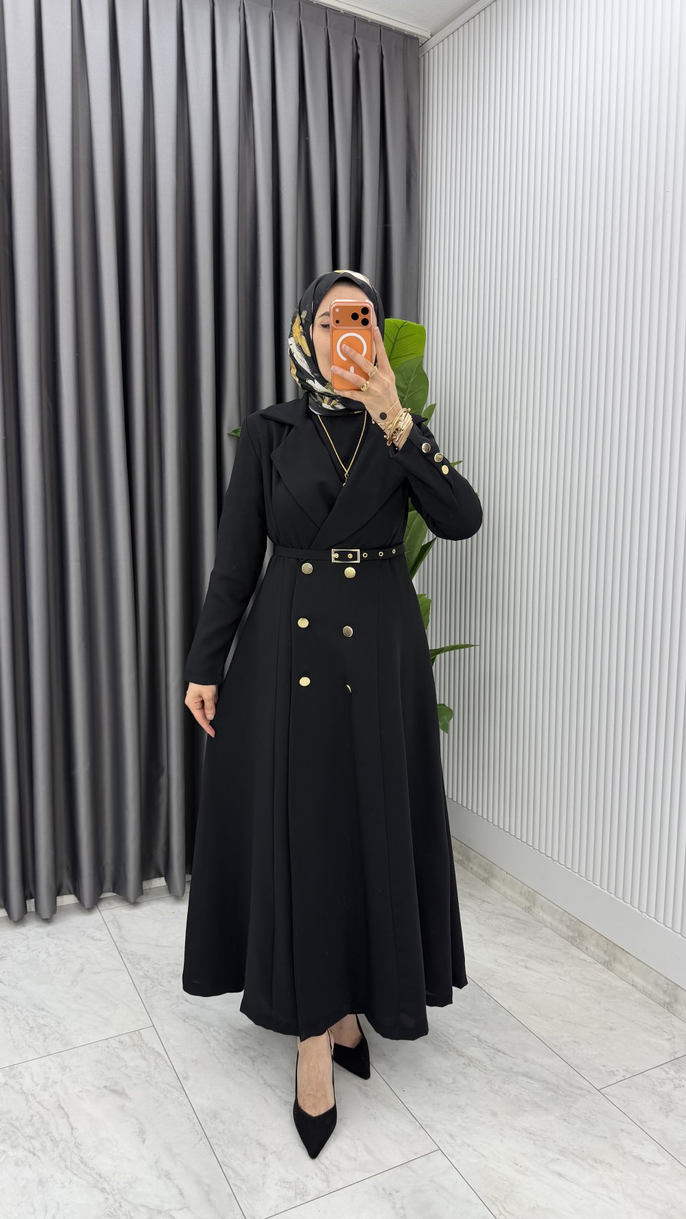 Siyah Premium Naz Jile Ferace Takım Tesettür Giyim