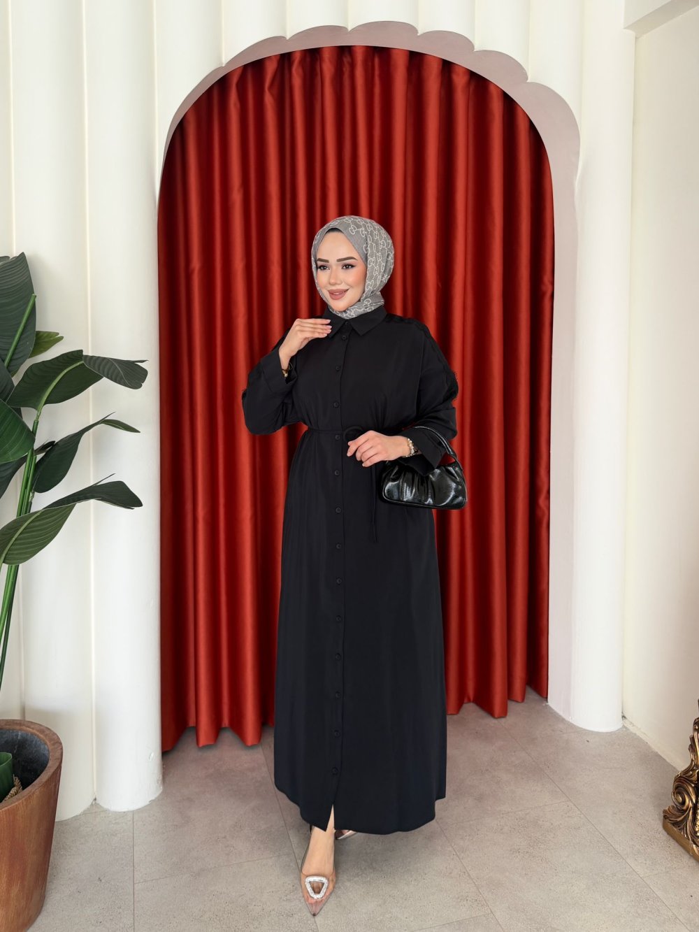 Elbise Omuzdan Kollara Doğru Dantel Dantel detaylıdır.