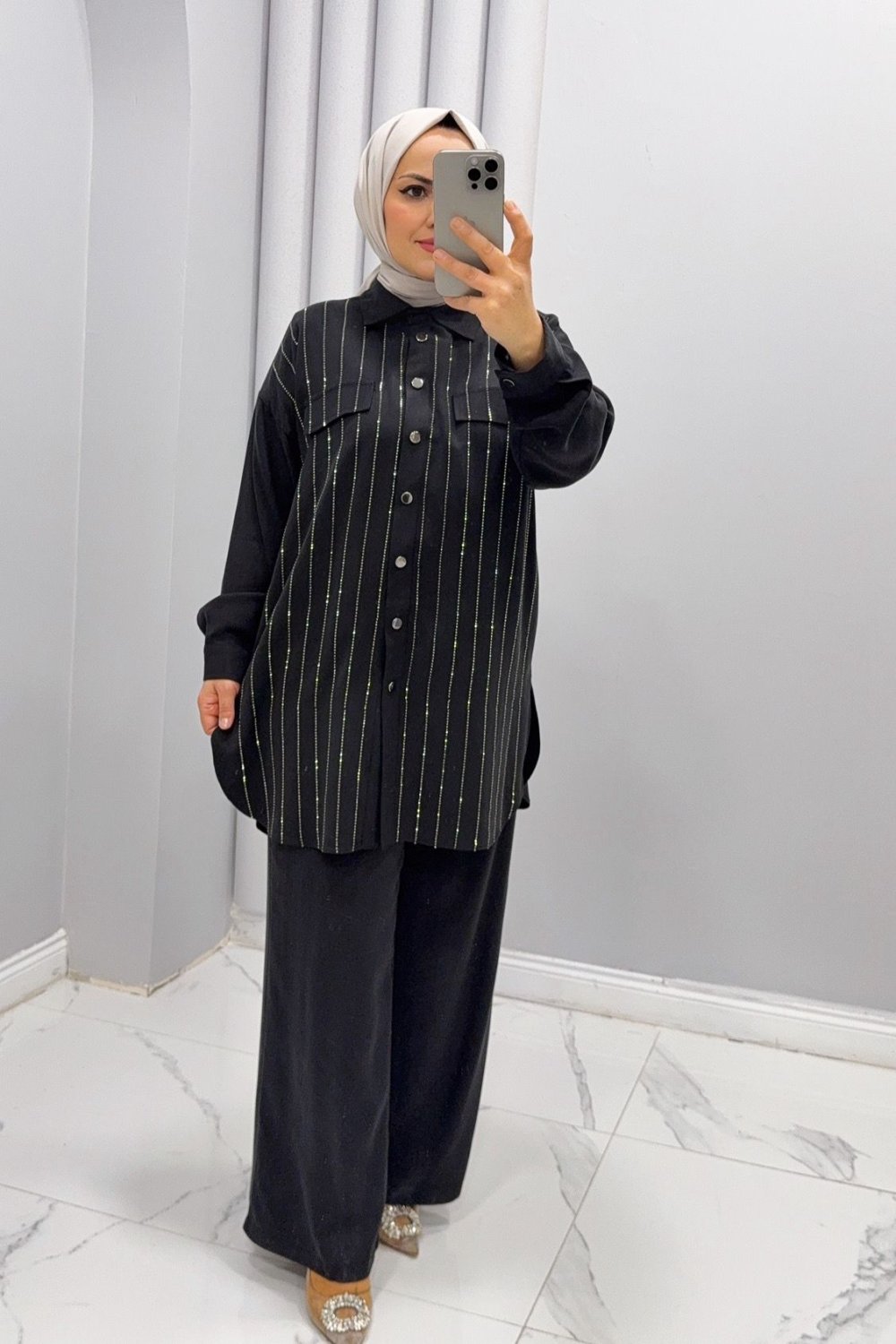 Takım İkili taşlı pırıltı Siyah