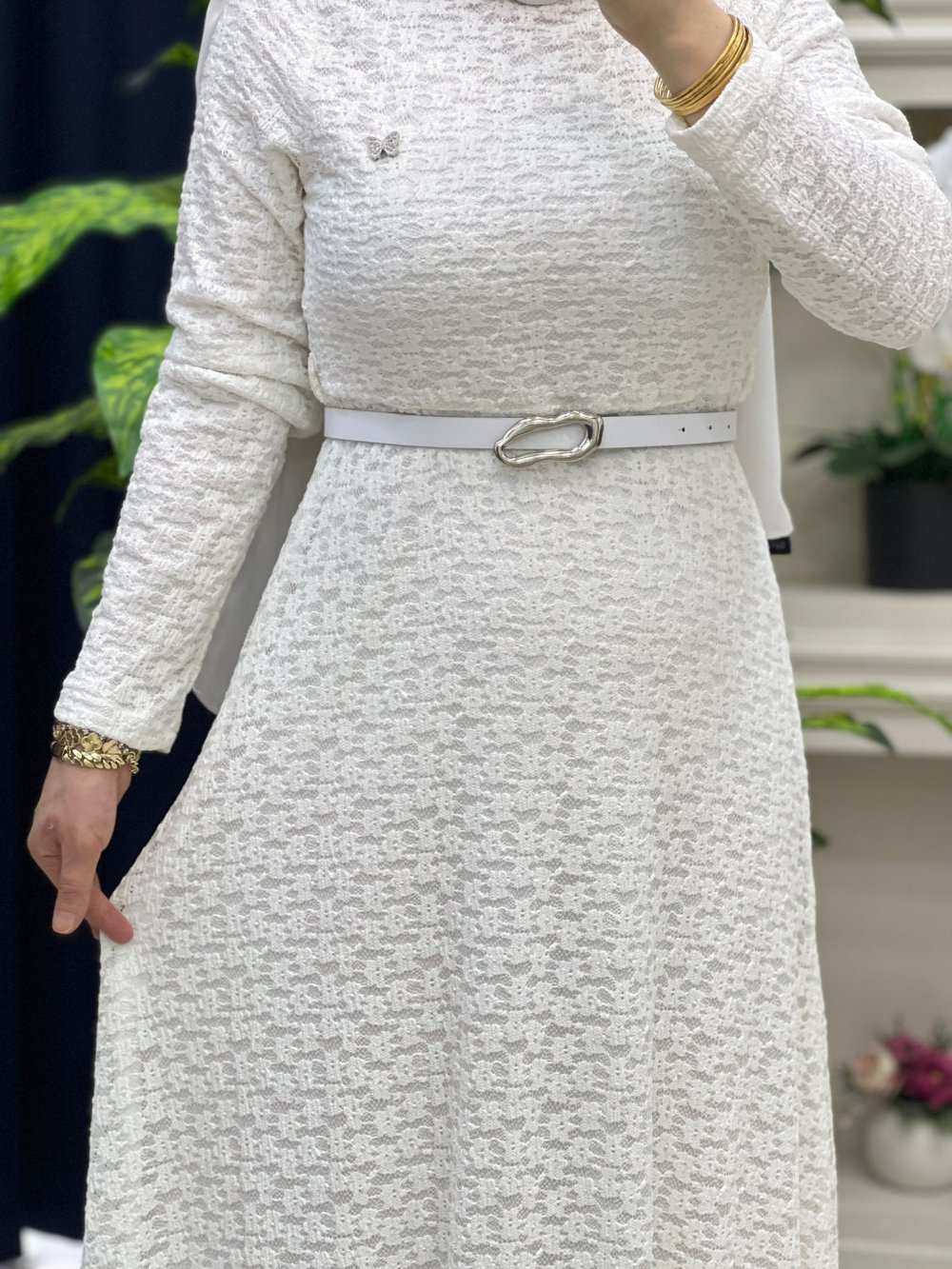 Tuba Dantel Elbise Beyaz