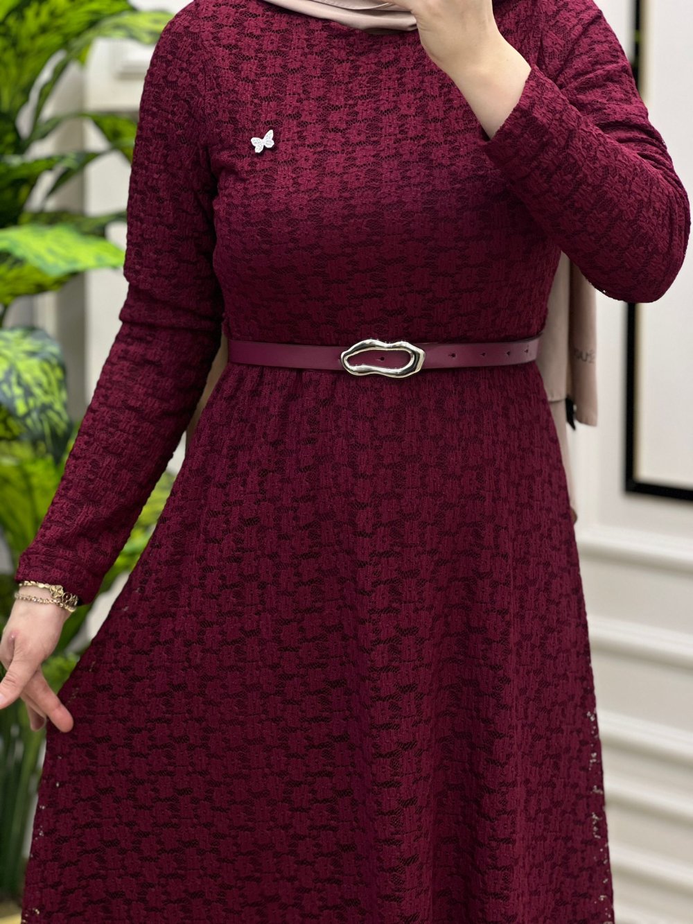 Tuba Dantel Elbise Bordo