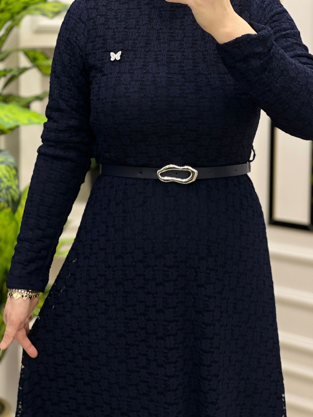 Tuba Dantel Elbise Lacivert