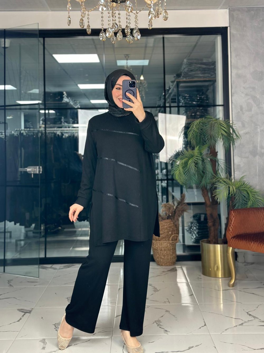 Kumaşı likralı örme kumaştır. Pantolon beli lastiklidir.