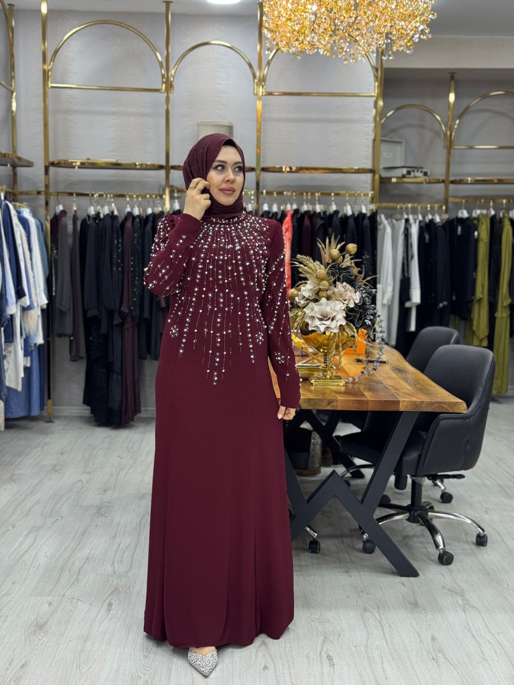 Venüs Abiye Elbise Bordo Bordo