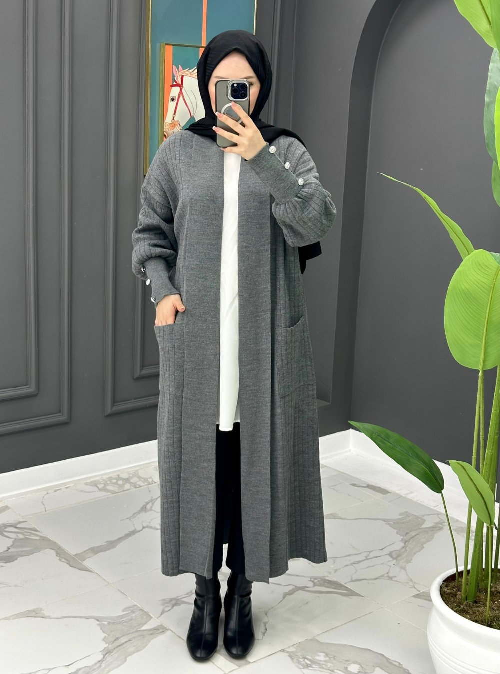 Yade Uzun Hırka - Gri Gri