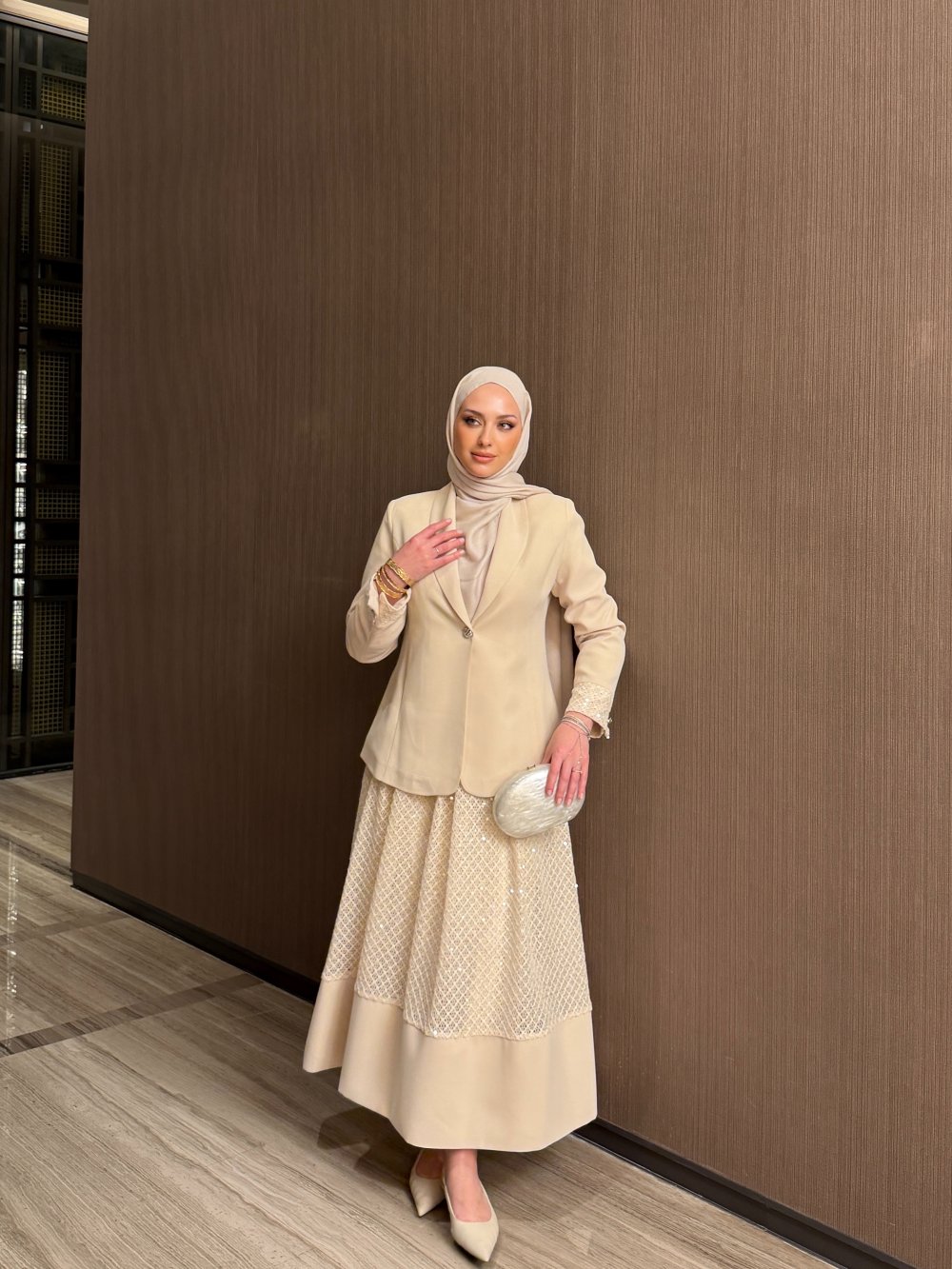 Yasemin Etekli Takım Krem Krem