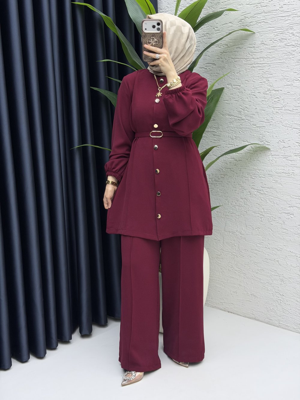 Zennup Pantalonlu Takım Tesettür Giyim Bordo