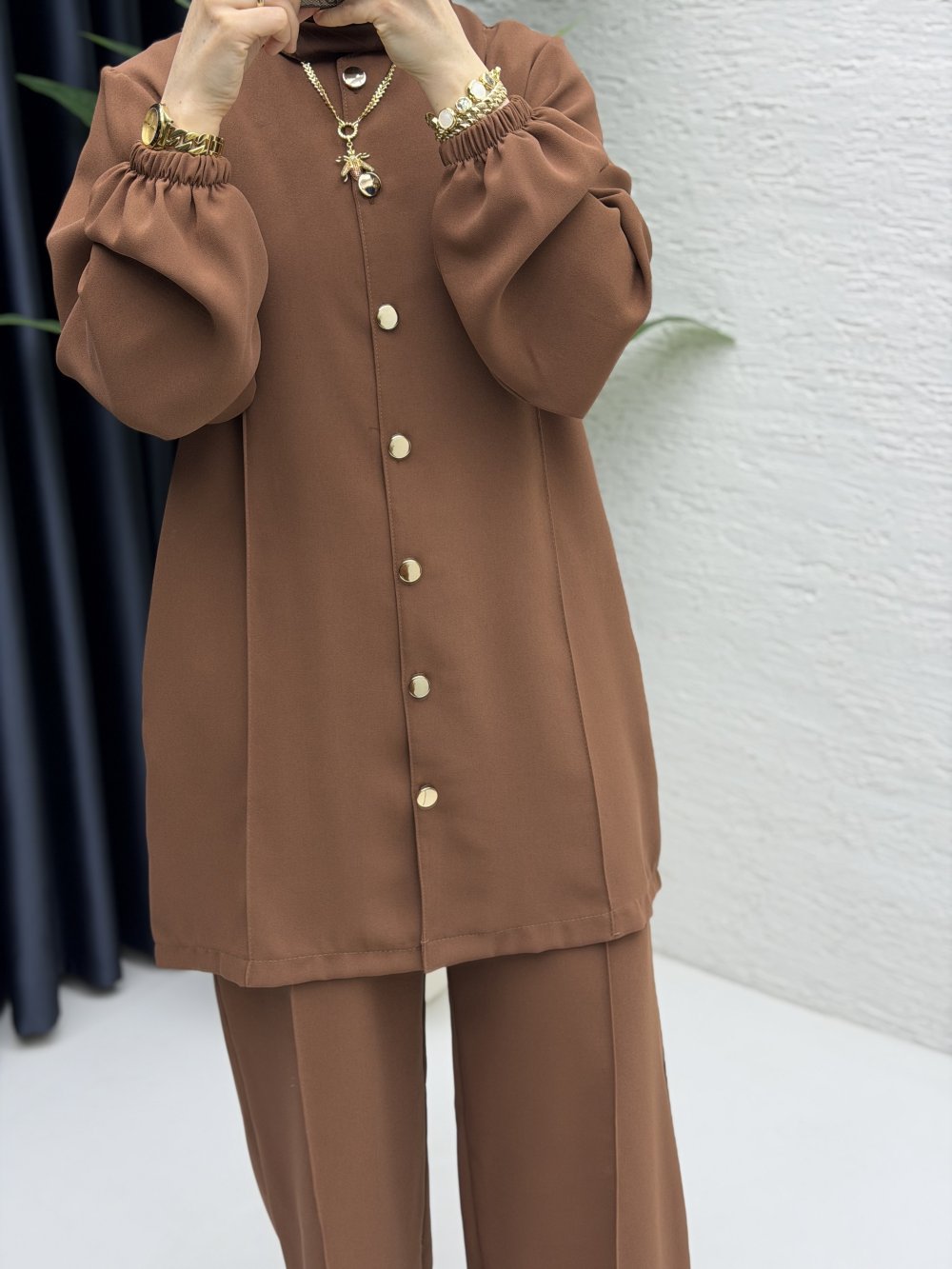 Zennup Pantalonlu Takım Tesettür Giyim Kahve