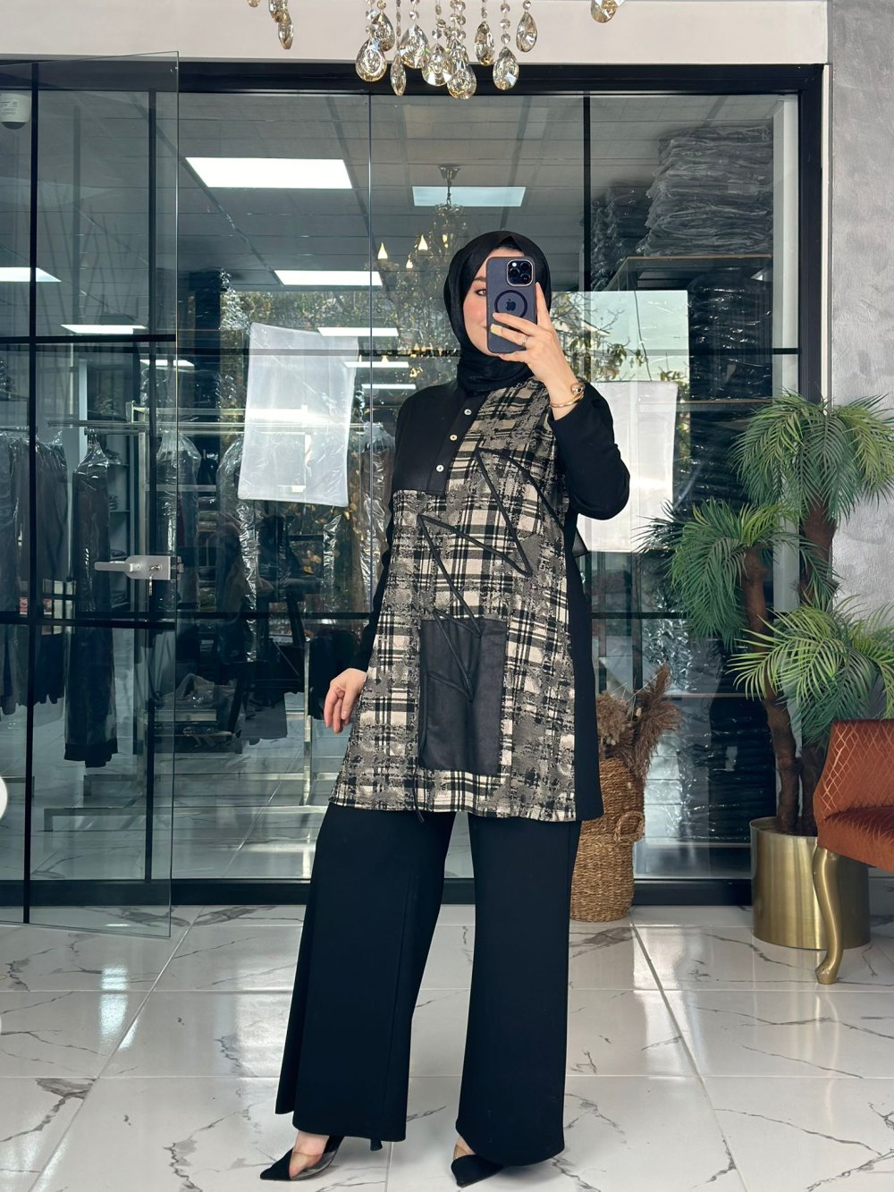 Kumaşı örme kumaştır. Deri kombinlidir. Pantolon beli lastiklidir.