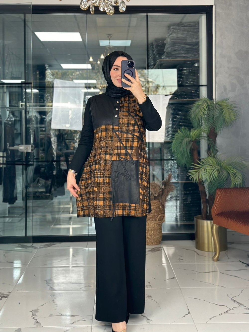 Kumaşı örme kumaştır. Deri kombinlidir. Pantolon beli lastiklidir.